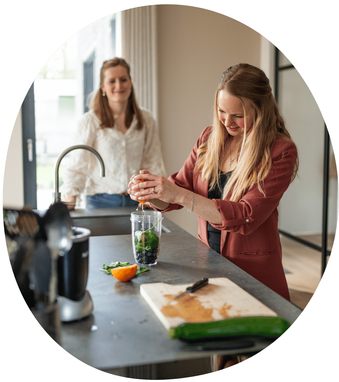 Wij, Anne Wijnhoven en Eline Respen, staan voor je klaar om je te begeleiden naar een gezonde leefstijl. Onze aanpak is persoonlijk, deskundig en altijd met oog voor wat bij jou past. We geloven in de kracht van pure voeding en leefstijlgeneeskunde. Met onze gedeelde passie voor voeding en gezondheid hebben we allebei de opleiding Voeding & Diëtetiek in Nijmegen afgerond. Daarnaast hebben we onze expertise verder verdiept met gespecialiseerde opleidingen op het gebied van maag- en darmproblematiek, diabetes type 2 omkeren, hormonen, zwangerschap en kinderdiëtetiek.