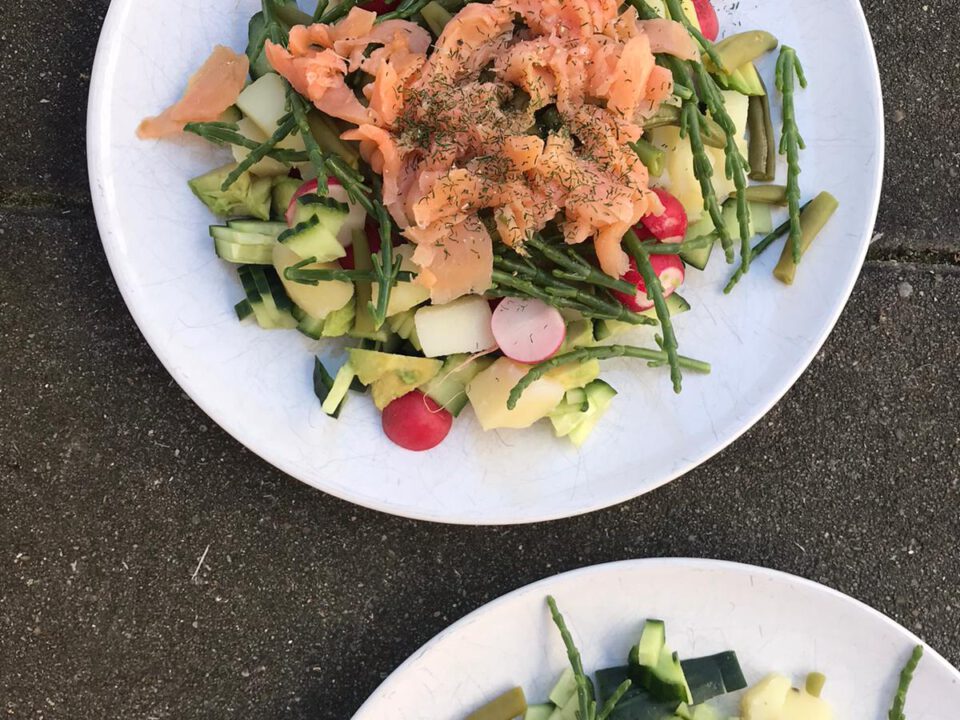 - Was de sla, komkommer en snacktomaatjes.