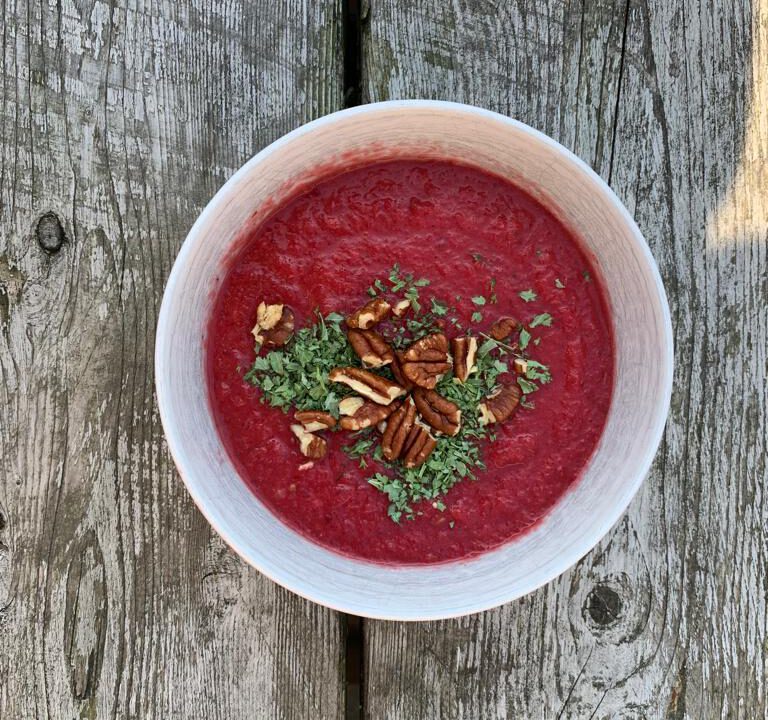 - Meng alle ingrediënten voor de dressing en serveer deze naast de salade.
