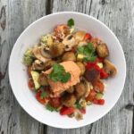 Falafel, quinoa, avocado, groente salade