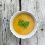zoete aardappel-, wortel- linzensoep