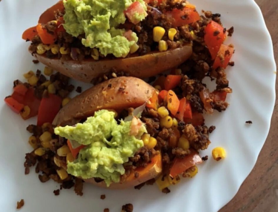 - Leg hier bovenop de gebakken garnalen en champignons.