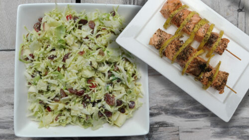 Welkom bij BBQ 1! Het seizoen is begonnen en deze week trappen we af met twee heerlijke, gezonde recepten. Geniet van een frisse zalmspies met citroen en dille, perfect te combineren met een knapperige spitskoolsalade. Een lichte en smaakvolle grillervaring die iedereen zal verrassen!