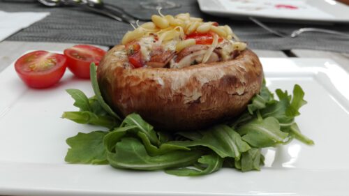 Maak indruk op je gasten met deze heerlijke 'BBQ 2- Gevulde portobello'! Deze smaakvolle paddenstoelen, gevuld met mozzarella, champignons, tomaatjes en Italiaanse kruiden, zijn een perfecte vegetarische toevoeging aan elke barbecue. Eenvoudig te bereiden en barstensvol smaak, ze zullen ongetwijfeld in de smaak vallen.
