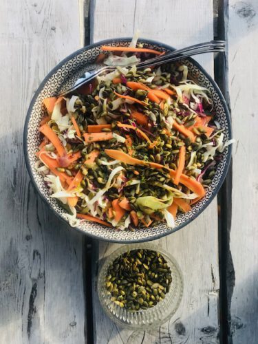 Ontdek deze verfrissende en smaakvolle Koolsalade, perfect als bijgerecht of lichte maaltijd! Met knapperige kool, zoete rozijnen en geroosterde pompoenpitten, aangevuld met een heerlijke kruidige dressing. Dit recept is een gegarandeerde hit voor de BBQ. Probeer het vandaag nog en verras je smaakpapillen!