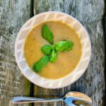 - Pureer het geheel met een staafmixer of blender tot een gladde soep. Verdun indien nodig met extra water of bouillon tot de gewenste consistentie.